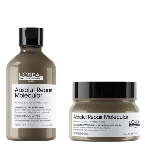 L'Oréal Professionnel Absolut Repair Molecular Shampoo 300ml and Rinse-Off Mask 250ml Set for Damaged Hair